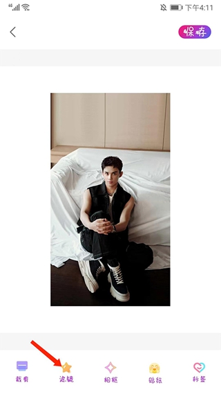 4、然后我们选择滤镜,让图片的背景与人更加贴合,这样会显得更加自然完美,