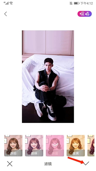 4、如图,可看到当前照片已经有蓝色滤镜效果了,选择右下角【打勾】图标即可保存蓝色滤镜效果。