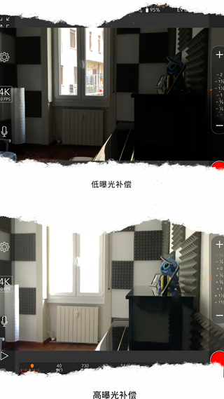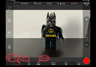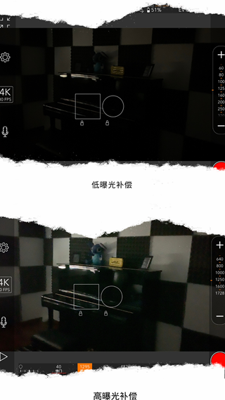 在promovie当中有三个选项可以帮助我们最快速的去调整手机上的光线效果,它们分别是: 1. 曝光补偿,2. 快门,3. 感光度。下面给大家简单介绍一下曝光补偿和感光度这两个最常用的选项。
