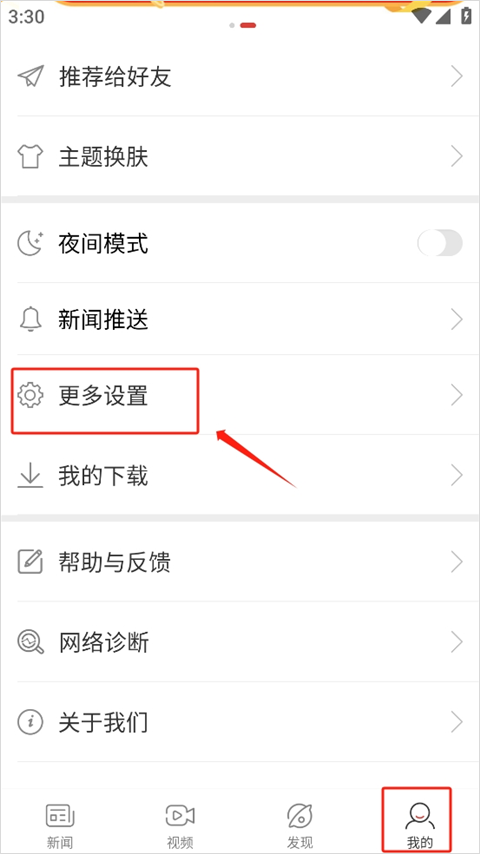 1、用户进入app界面,点击右下角“我的”中的“更多设置”。