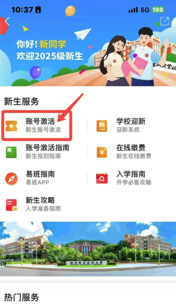 激活账号->跳转登录迎新系统->自助报到办理->填写信息完成预报到->现场报到