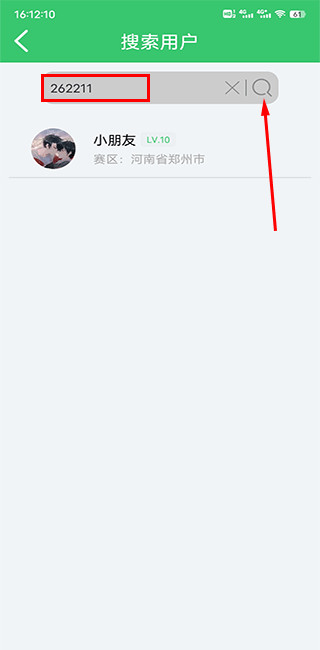 2、输入要添加好友的完整ID数字,然后点击搜索;