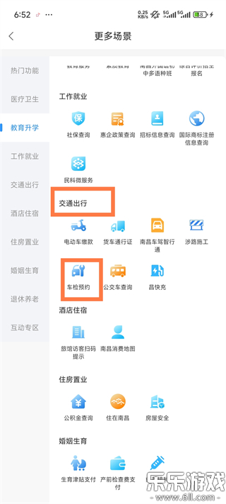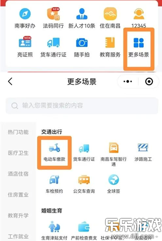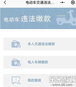 选择【交通出行】,找到【电动车缴款】菜单,如下图:
