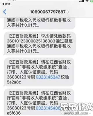 输入支付密码后,1-3分钟内,会收到一条【江西财政系统】发来的短信,如下图:
