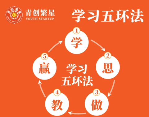 为此我提出了“学习五环法”,这也是我们青创繁星的基石理论,我们坚信,通过学、思、做、教、赢这套闭环的方法,可以将知识变成生产力!