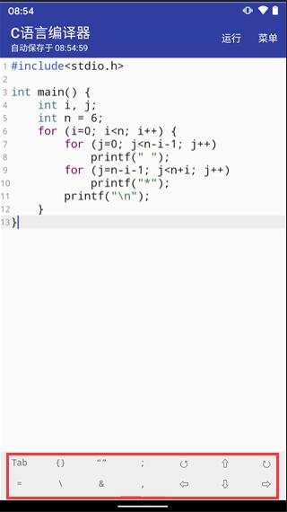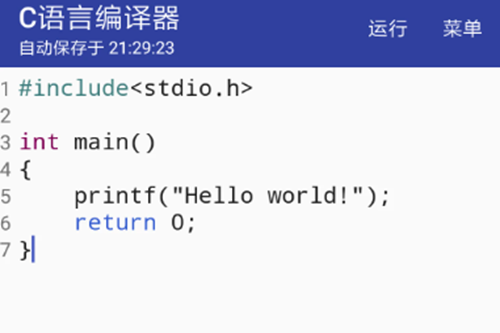 1、打开c语言编译器app之后即可直接在手机上编写代码,写完之后点击运行,可以进行代码的编译组建以及运行。