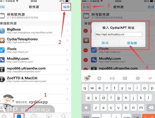 1、1.打开Cydia--选择--软件源--编辑--添加叉叉助手源--http://apt.xxzhushou.cn