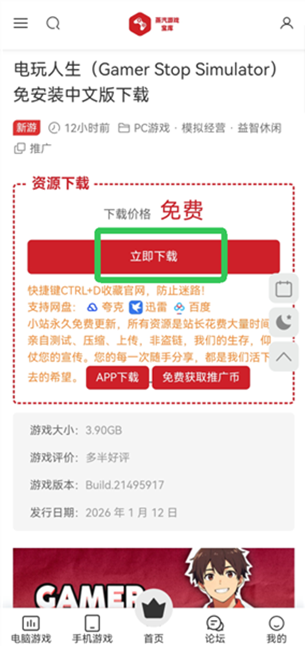 2、电脑游戏只有网盘下载,点击【立即下载】。