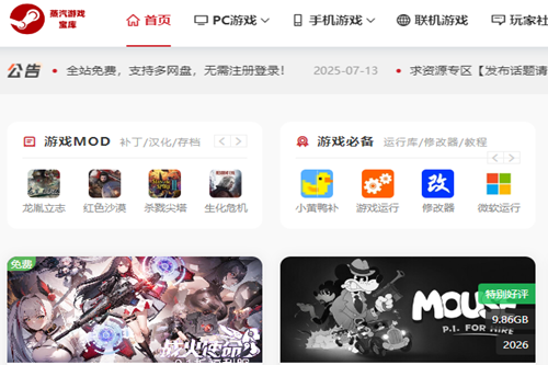 蒸汽游戏宝库是一款专注提供高质量Steam与单机游戏资源的免费平台,以中文友好、资源整合为核心,收录大量本地化翻译的PC、主机及独立游戏,覆盖多元题材并定期更新热门大作与经典游戏,同时提供游戏本体、汉化补丁、启动器、攻略等一站式下载服务,部分资源附带MOD合集与高清材质包,为玩家带来完整顺畅的游戏获取体验。