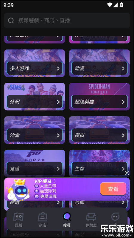 3、在搜寻界面下,我们可以查询各种类型的游戏、直播、商店内容。