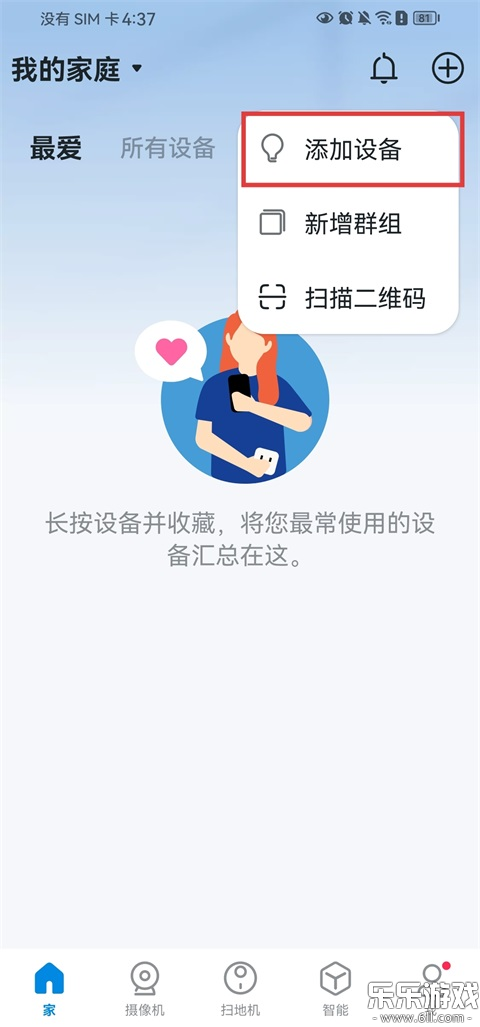 1、打开Tapo App,进入【家】页面,点击右上角的添加图标;