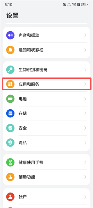 1、前往手机“设置”-“应用和服务”。