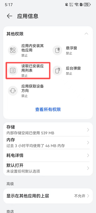 4、进入应用信息展开”其他权限“扩展页。
