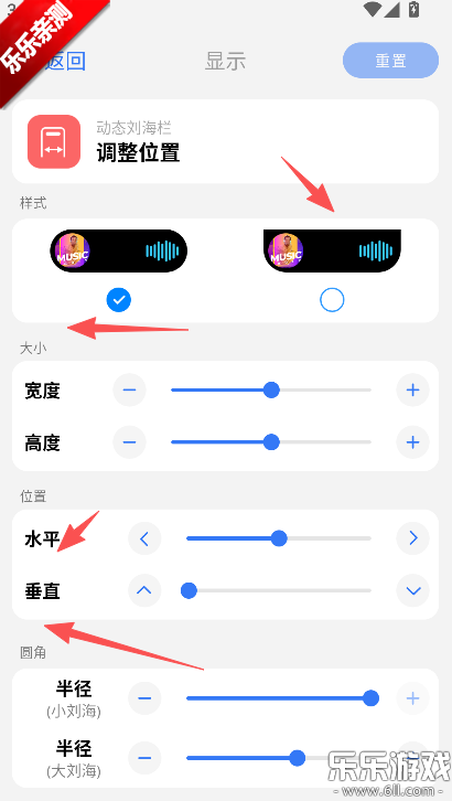 2、按照大小、位置以及圆角的刻度完成显示位置的修改。