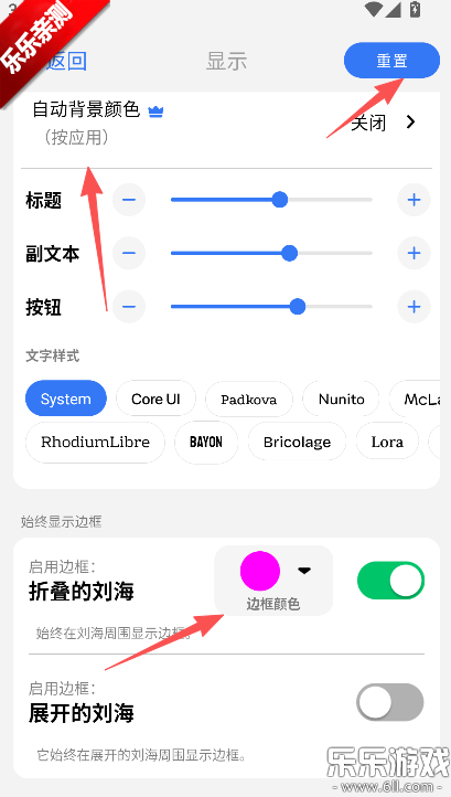 3、下滑至底部,点击开关,看是否需要启用边框或是展开的刘海。