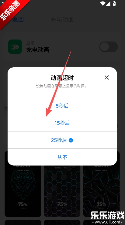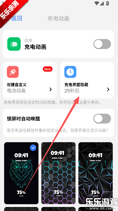 2、在此对充电动画的隐藏时间进行设置。
