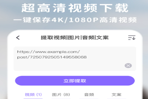 界面简洁,操作流程简单,用户只需复制链接粘贴到软件中,点击“立即提取”即可开始下载,适合普通用户快速上手。