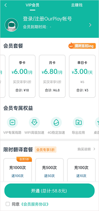 注册OurPlay账号,可以用于购买VIP服务。