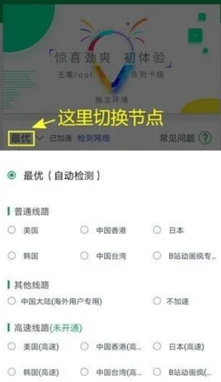OurPlay会自动为你匹配最优节点,以保证流畅的网速,所以一般情况下是不需要手动切换节点的。