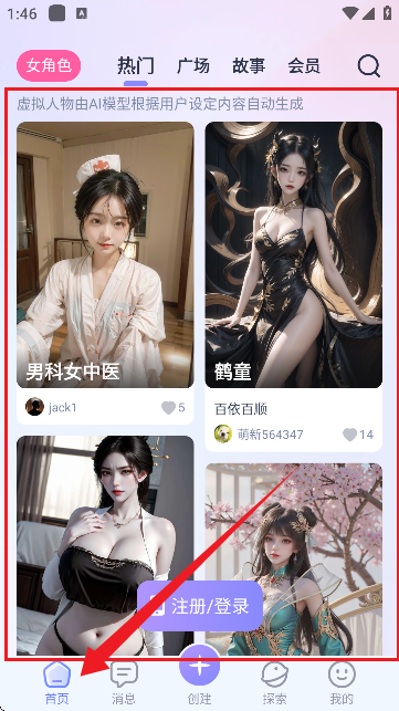 4、如图所示,软件首页展示了一些推荐的热门角色,供您参考和选择,发现心仪伴侣。