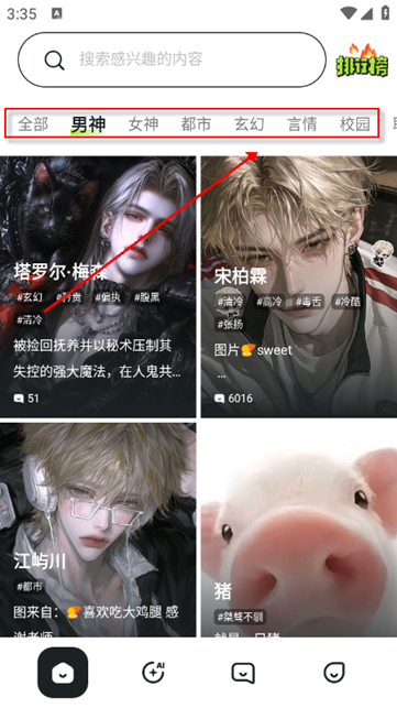 1、在软件首页可以根据分类选择AI角色。