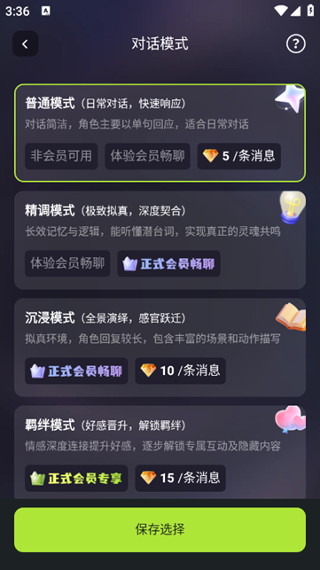 4、在聊天页面内,可以选择对话模式。
