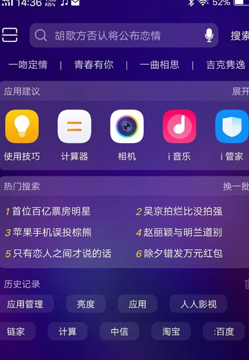 若手机安装了蓝心小V组件,可在桌面点击蓝心小V图标,或在搜索框中输入“蓝心小V”后回车,进入蓝心小V界面。