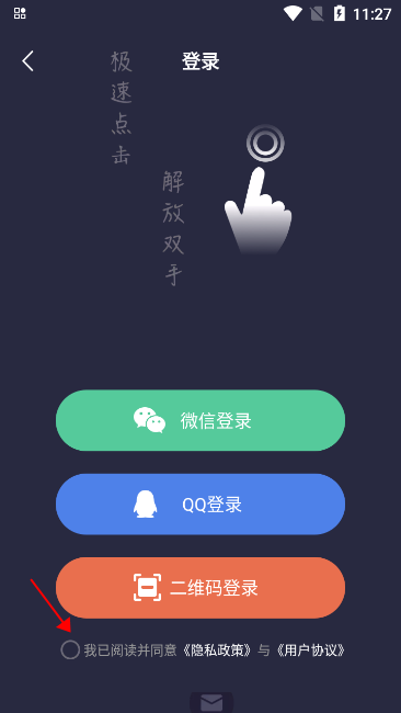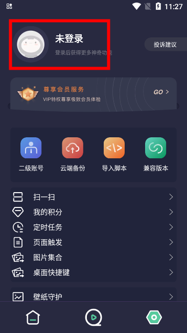 打开小触控应用,点击“未登录”按钮;进入注册页面