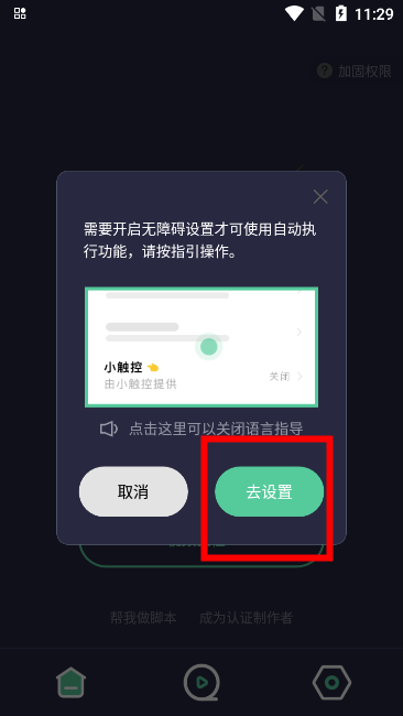 点击去设置,完成无障碍设置才能开启自动执行功能