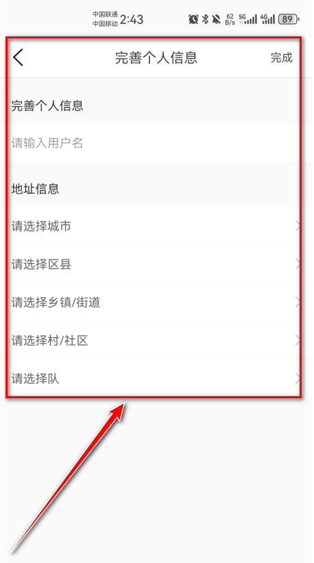 3.完善个人信息之后点击完成,如下图所示。