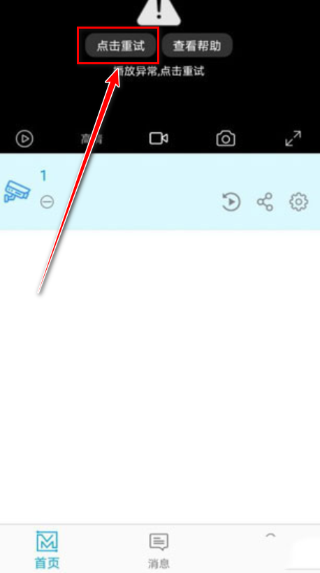 6.最后将摄像头通电通网就可以观看了,如果出现播放异常的页面,尝试点击重试即可。