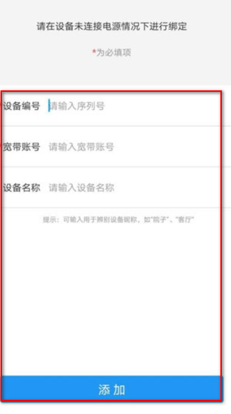4.输入设备序列号、宽带账号、设备名称,然后点击添加。