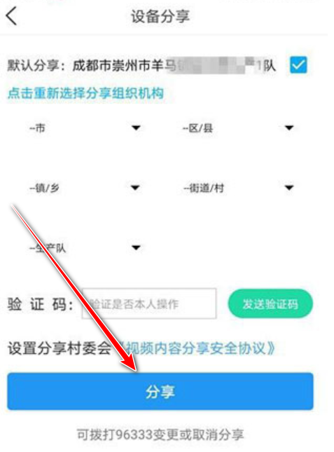 5.然后就有一个分享摄像头页面,输入验证码然后点击分享即可。