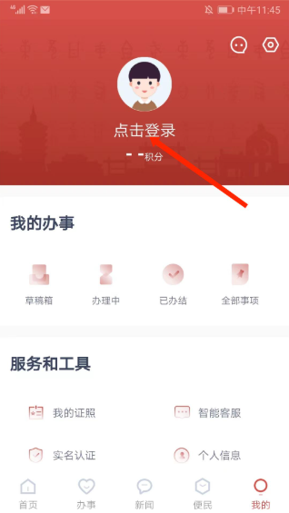 2、进入【用户中心】界面,选择上方【点击登录】选项,