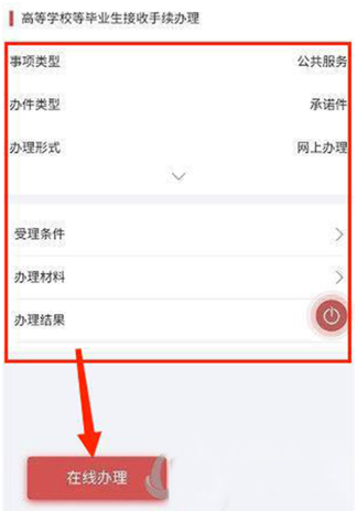 2、进入【手续办理】界面,选择下方【在线办理】选项,