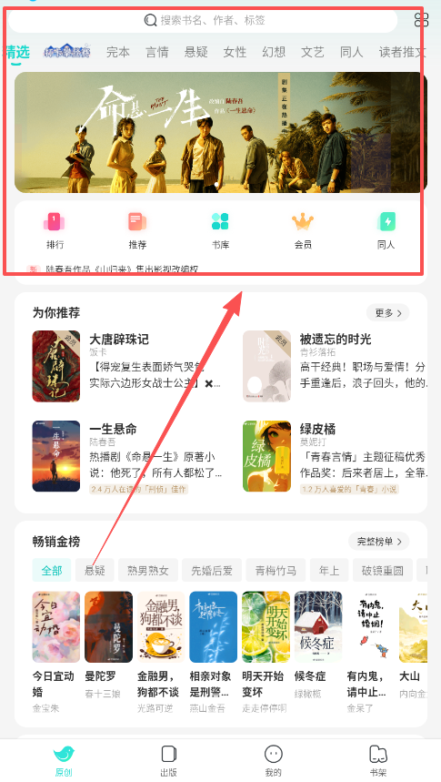 2、全面而清晰的作品分类,个性化的图书推荐。