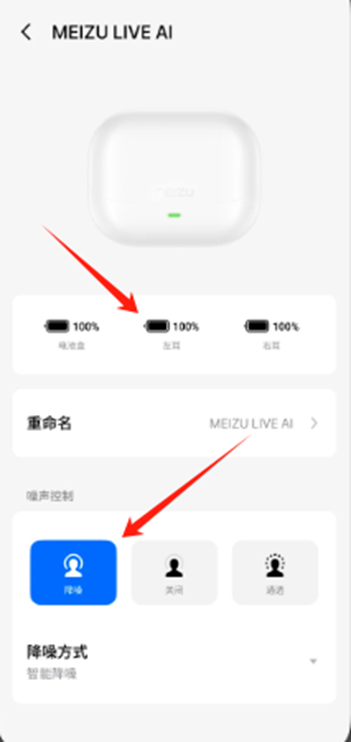 1、当耳机连接完成后你可以查看耳机音量,调整耳机降噪模式。