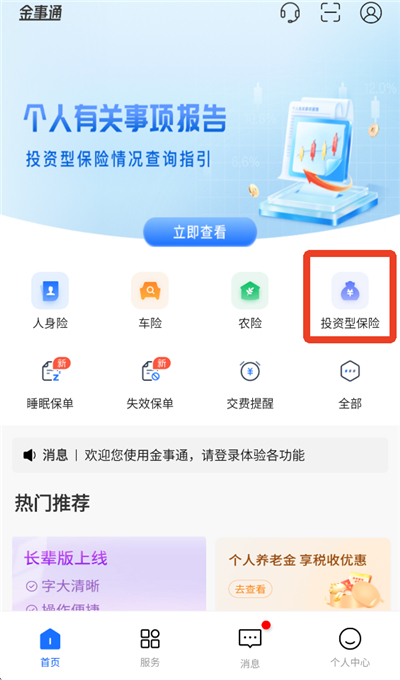 1、首页点击【投资型保险】。