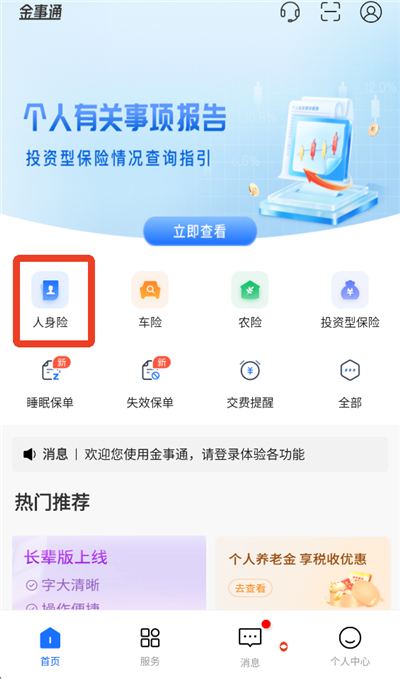 1、点击首页的【人身险】。