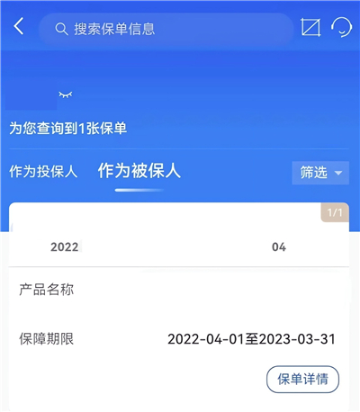 2、点击【作为被保人】选项,即可查询您作为被保人的保单信息。