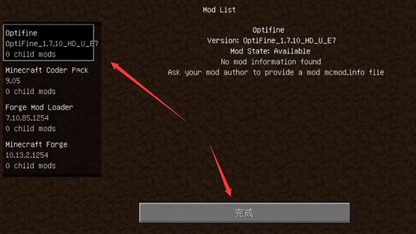 8、进入之后可以查看自己安装的mod列表,点击“完成”。
