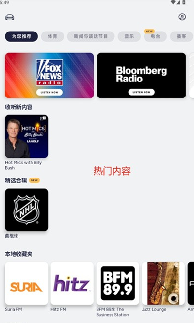 体育实况。音乐。新闻。播客。