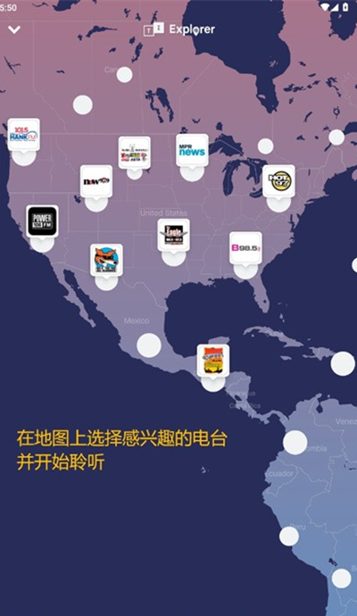 3、另外,你还能通过地图功能选择感兴趣的电台并开始收听。