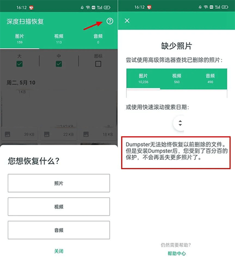 Dumpster的精彩亮点:照片和视频恢复应用程序: